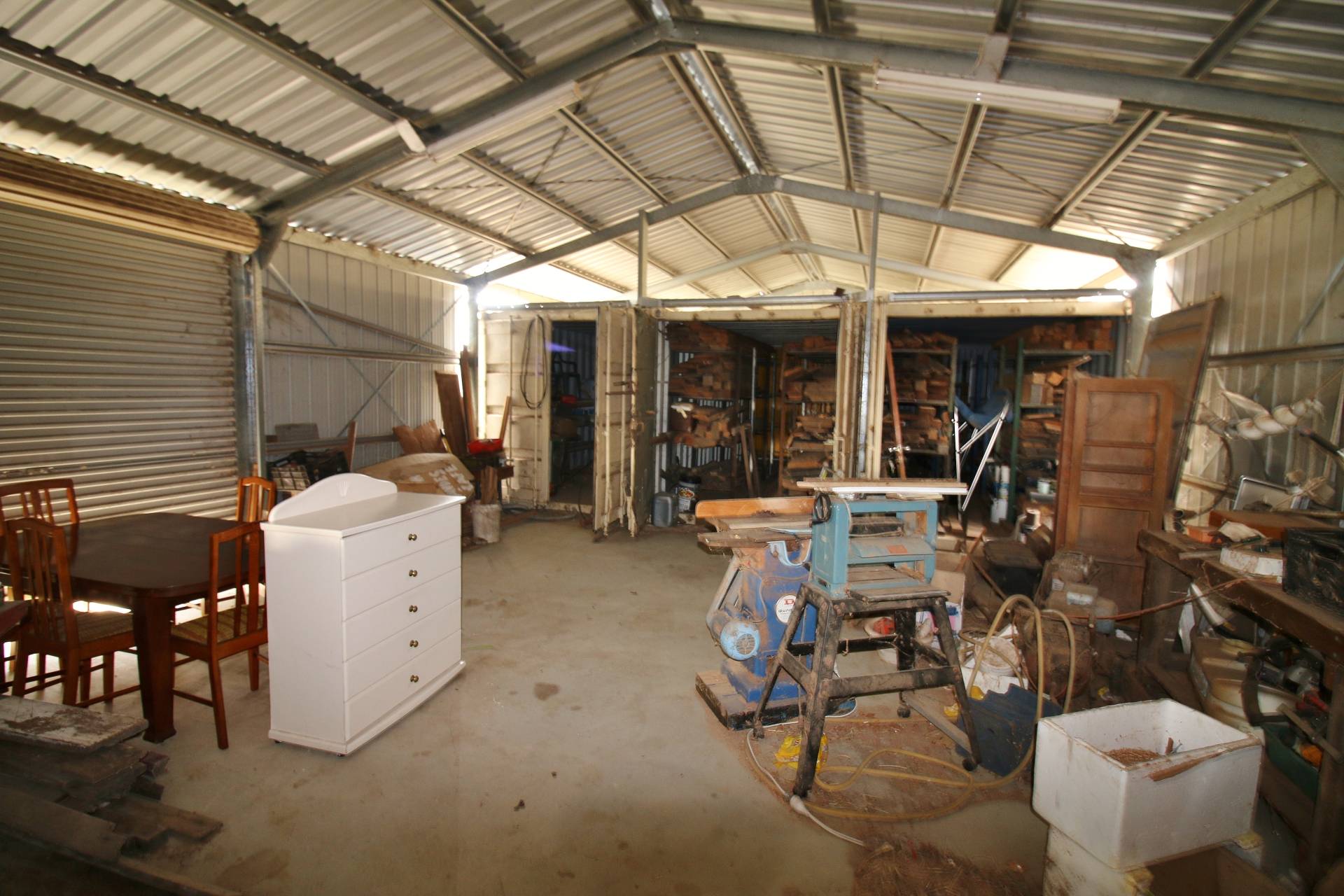 * 21m x 7.5m Steel Shed Fully Concreted, Powered with 3 x 20f Containers under Roof