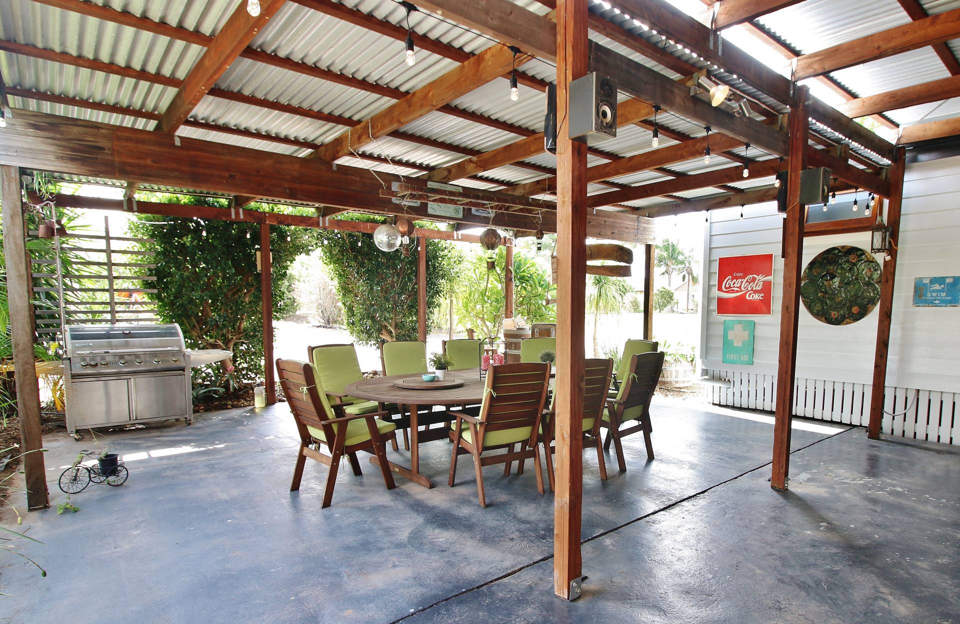 • Massive entertainment area with wood heater