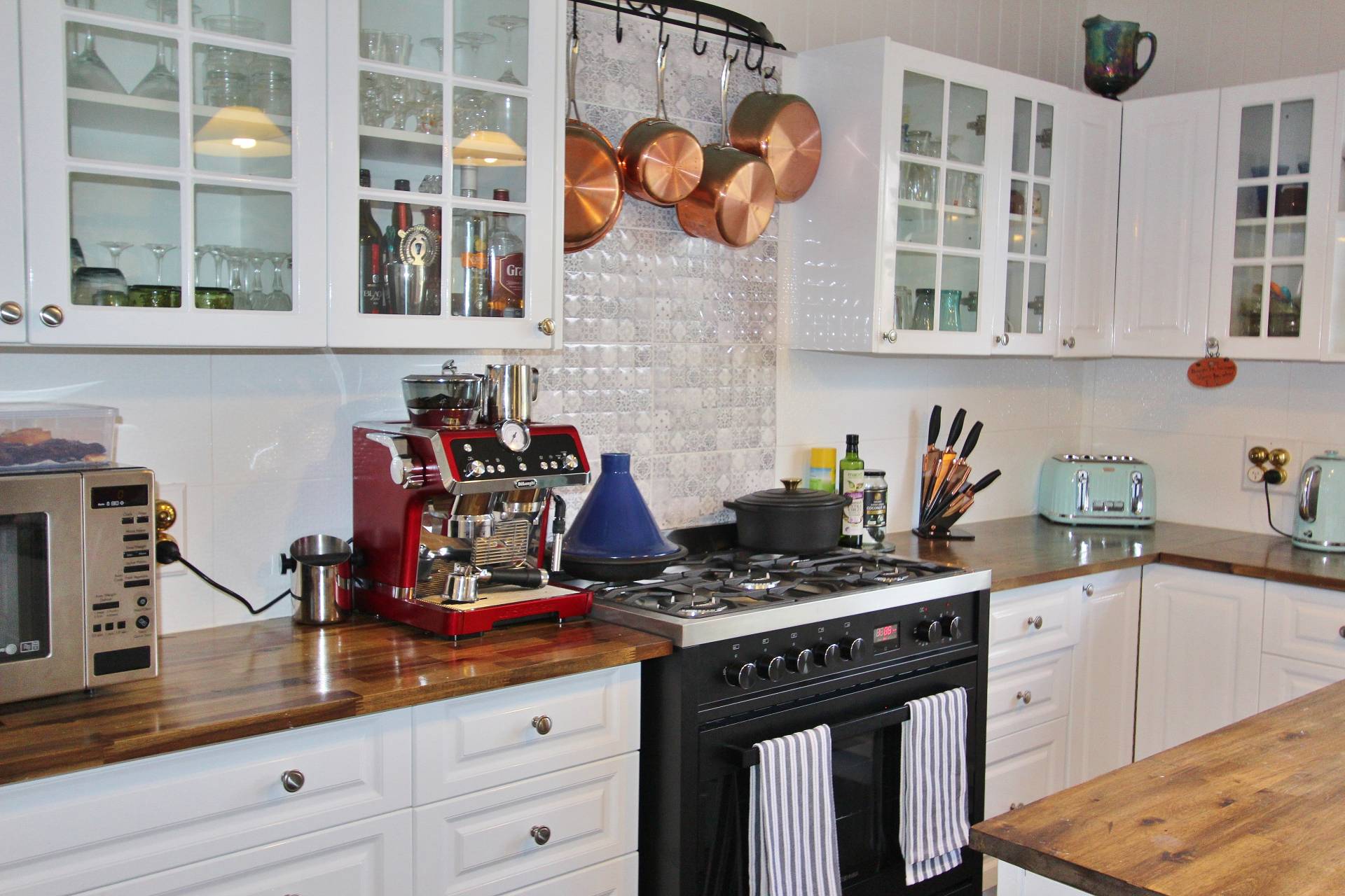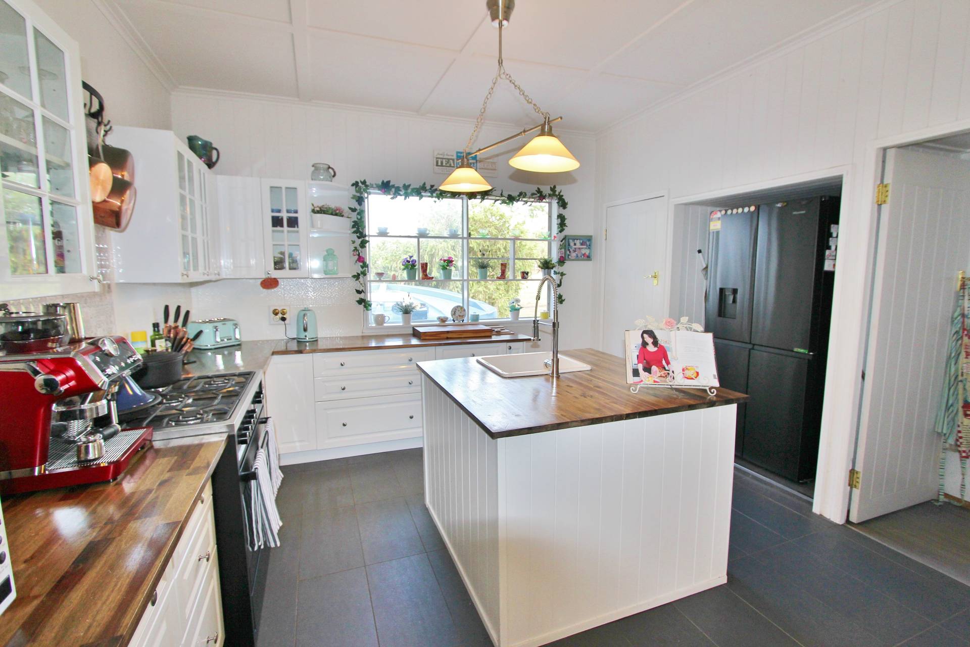 • Modern central kitchen with cubed island bench, gas cook top, dishwasher, Walk-in pantry