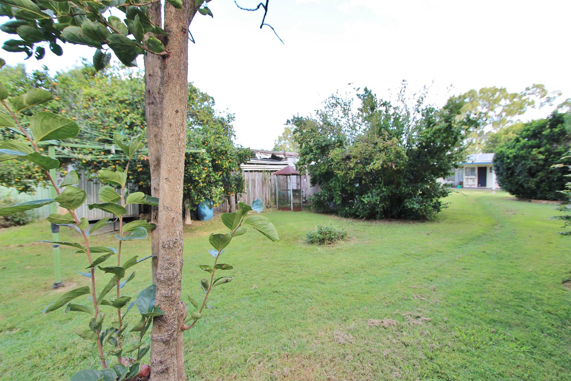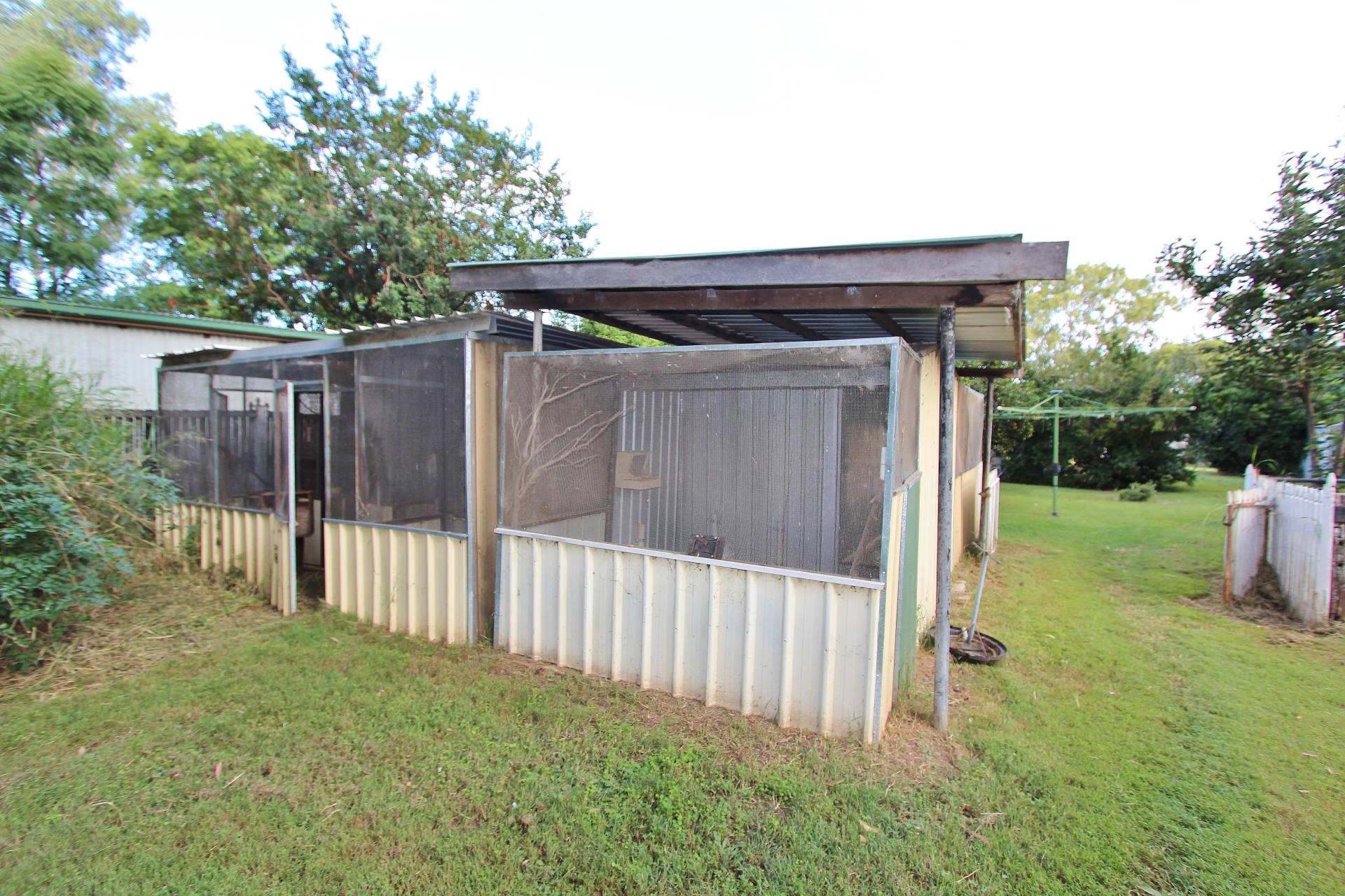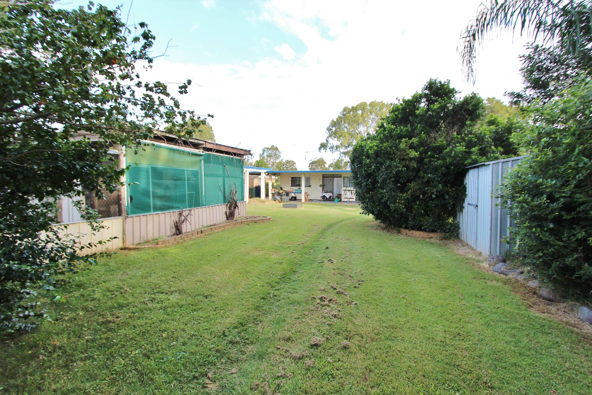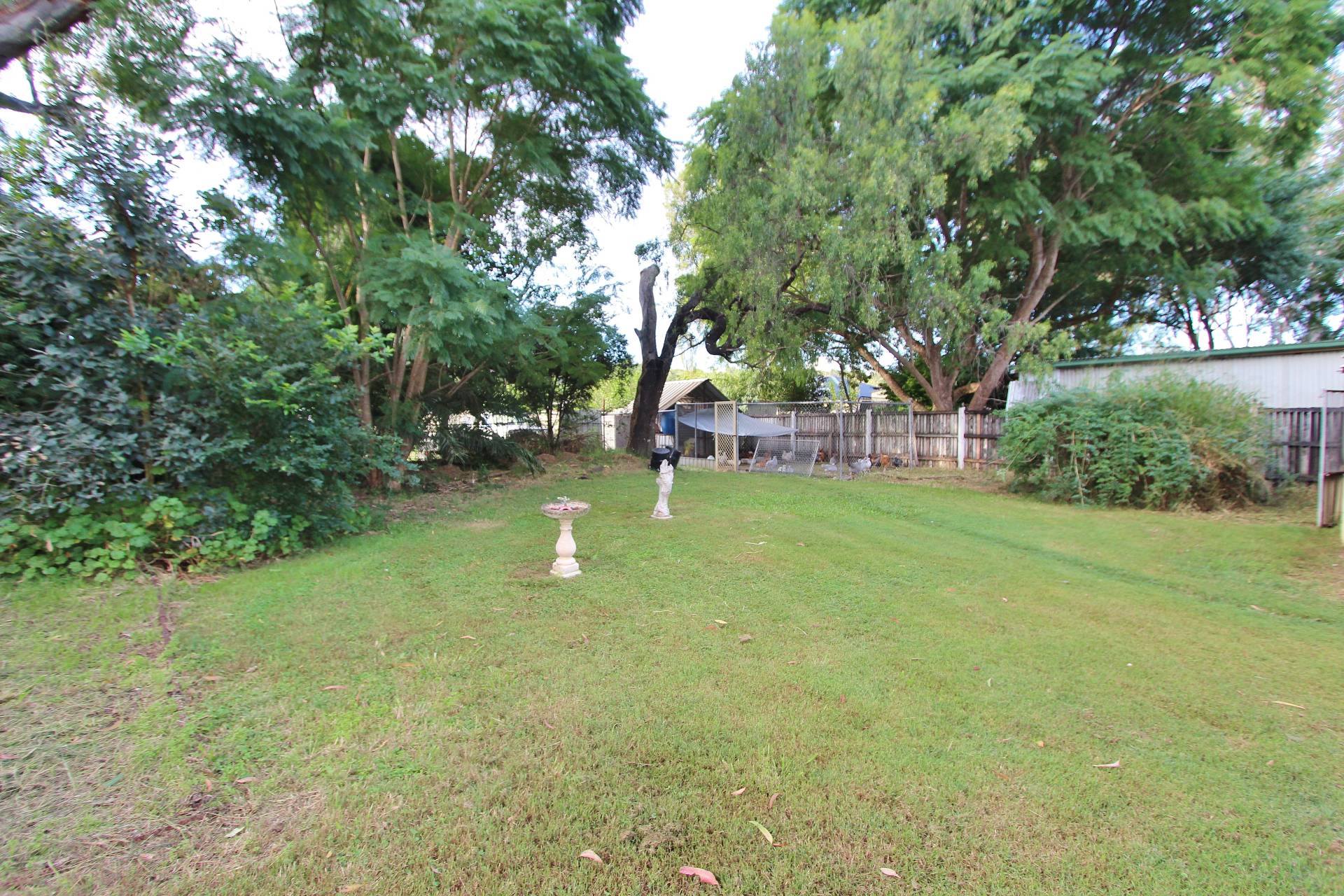 Lovely establish gardens, backyard is fenced in to 2 sections with loads of bird aviaries, gardens shed and lockable storage shed.