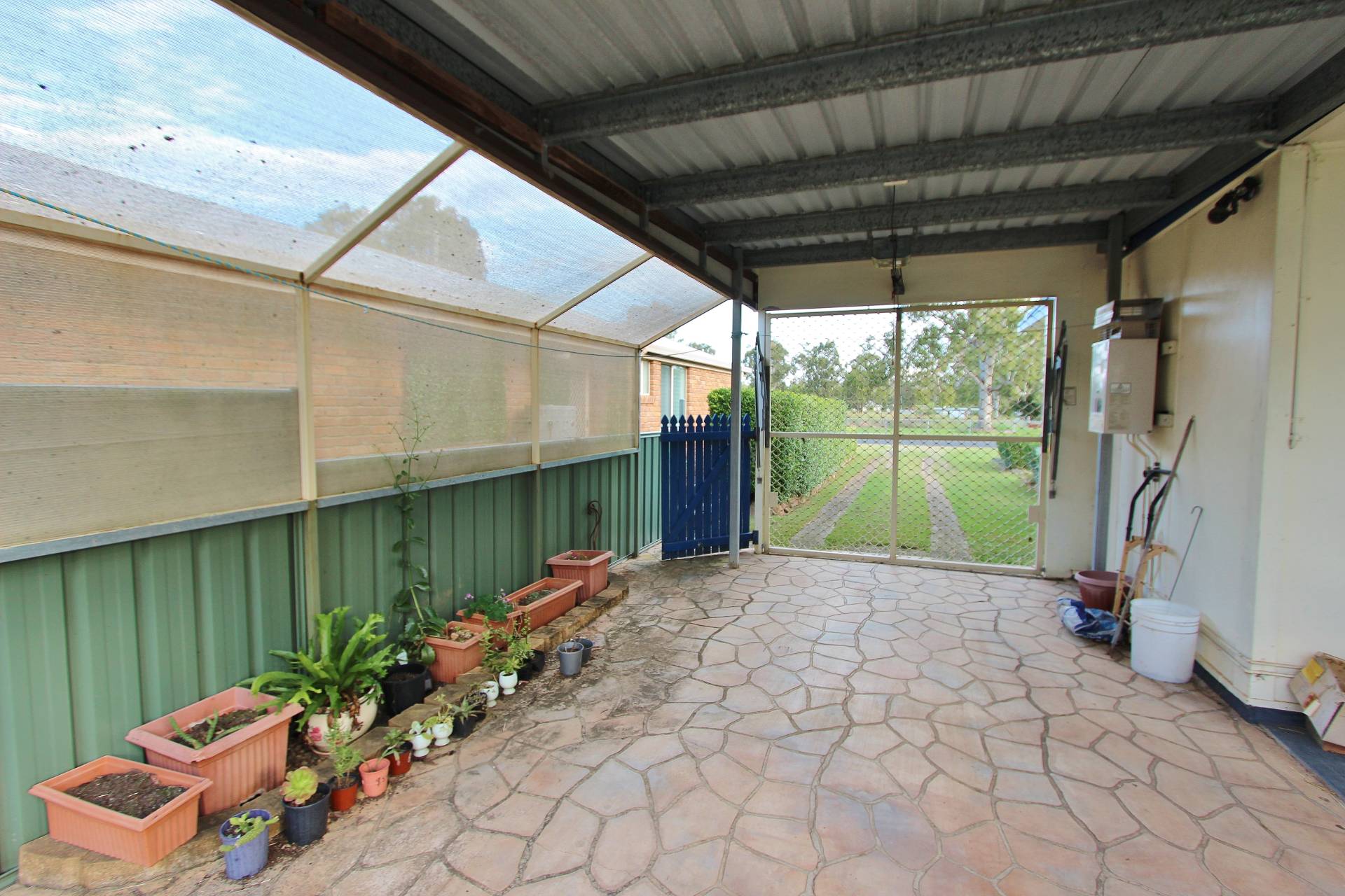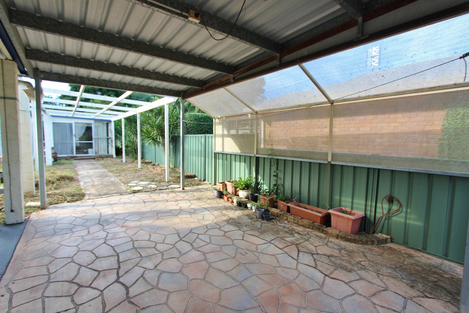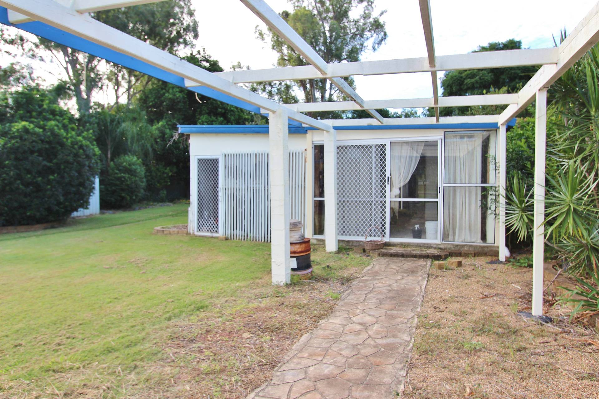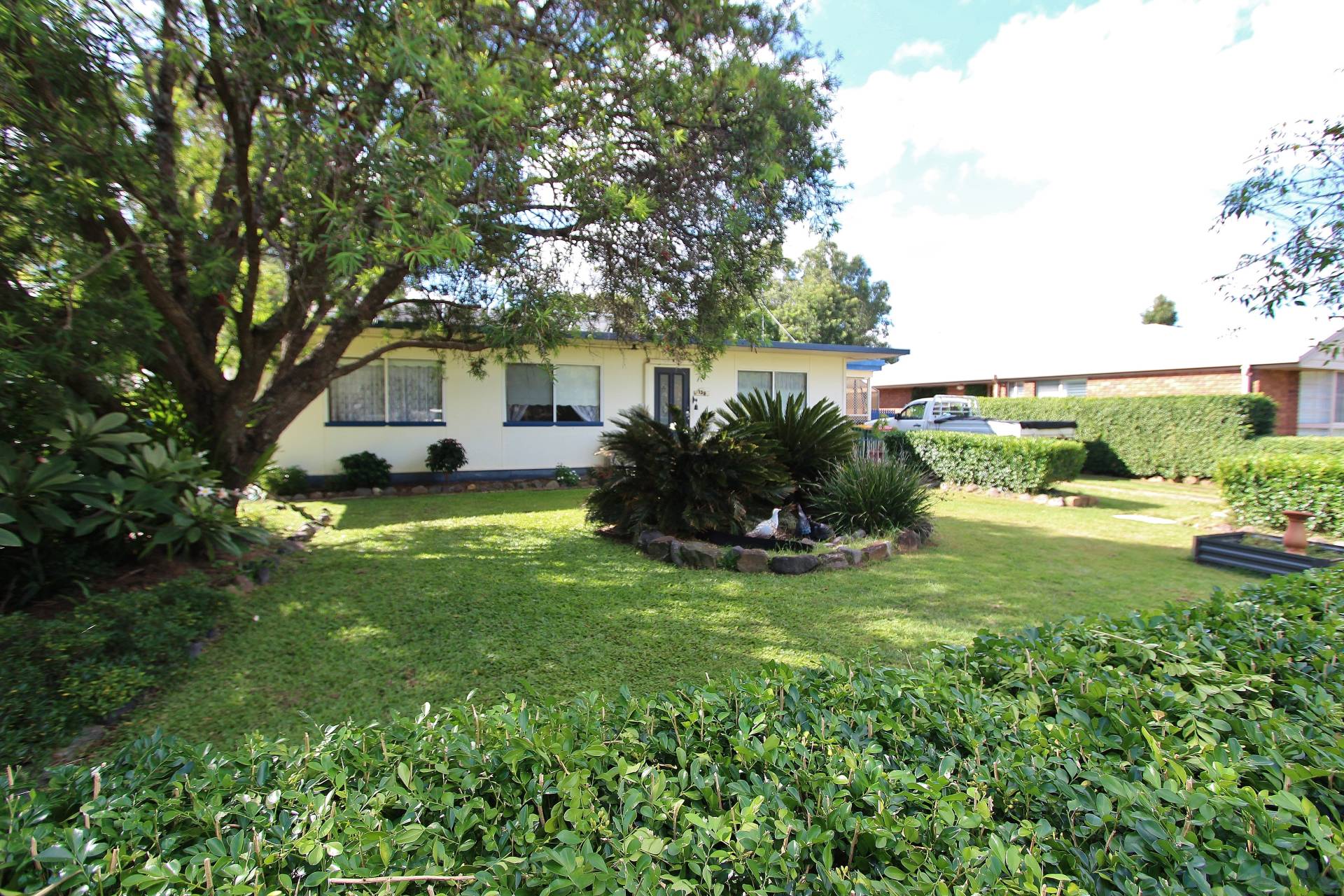 Lovely establish gardens, backyard is fenced in to 2 sections with loads of bird aviaries, gardens shed and lockable storage shed.