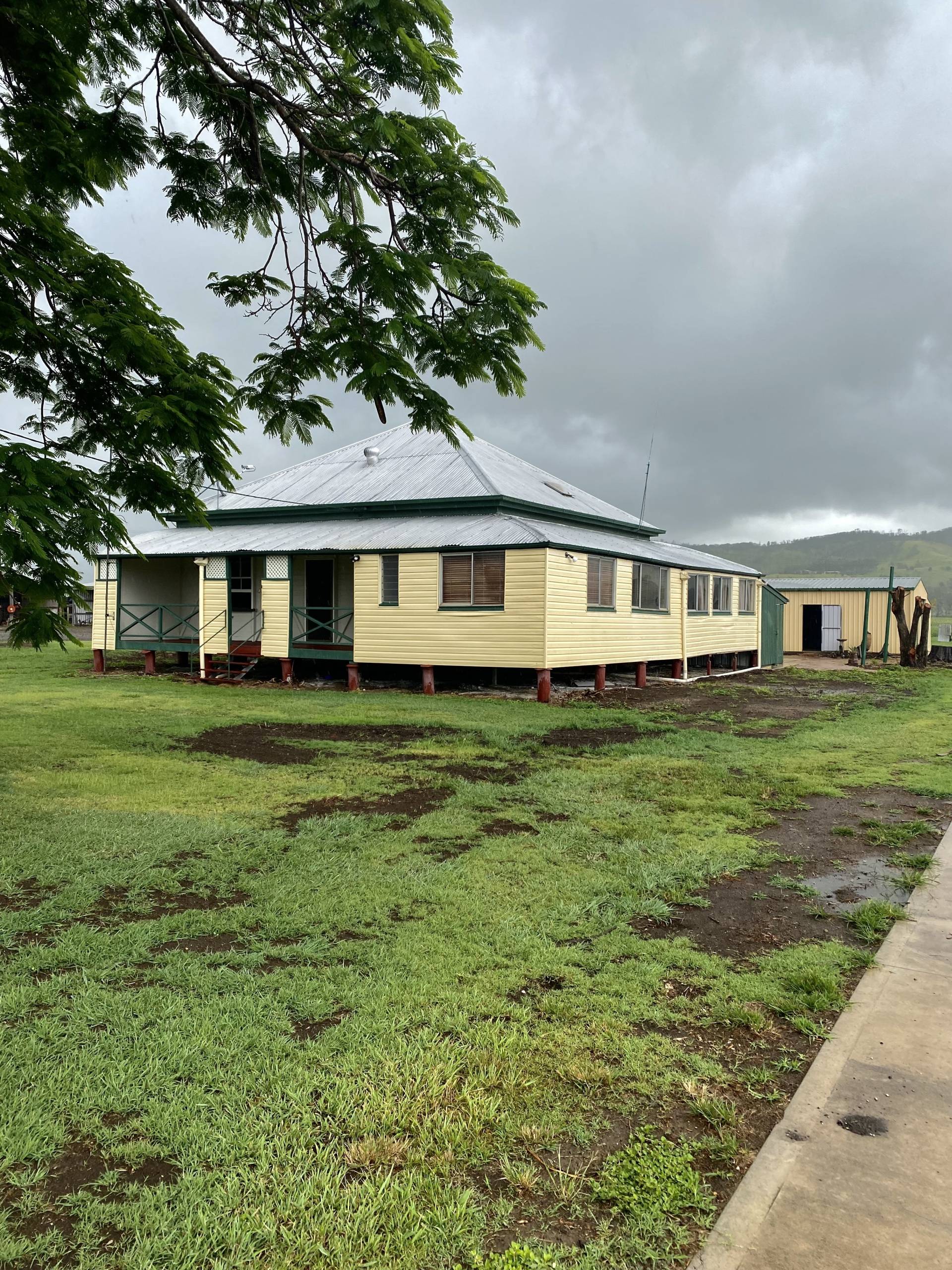 Low set 3 bedrooms plus a Sleepout with a separate room that could be used as a walk in robe. Large lounge room.  Separate dining area.  Spacious kitchen. 3 water tanks. 6 x bay powered shed, 2 bay shed, 1 carport and 1 x single garage.