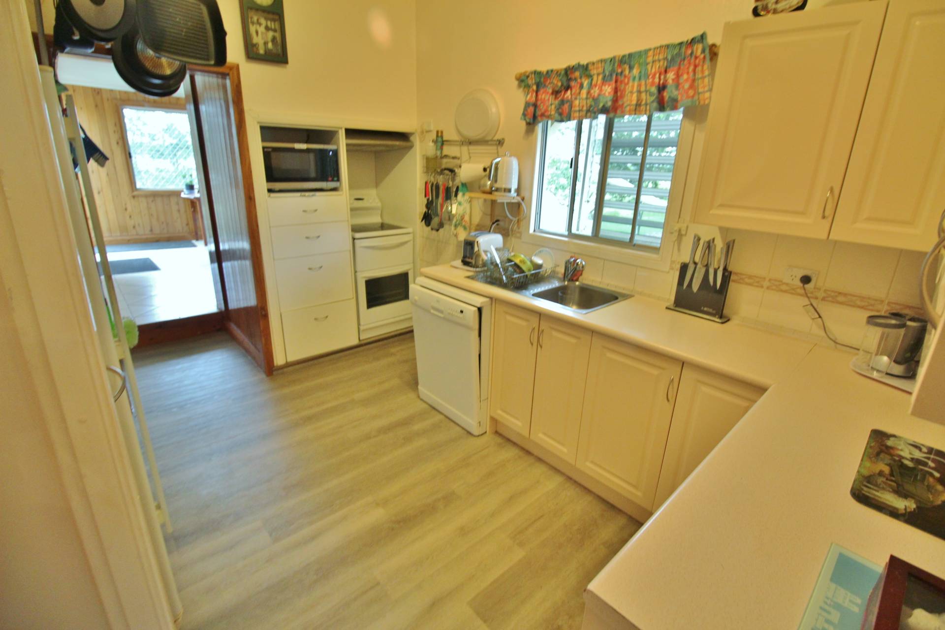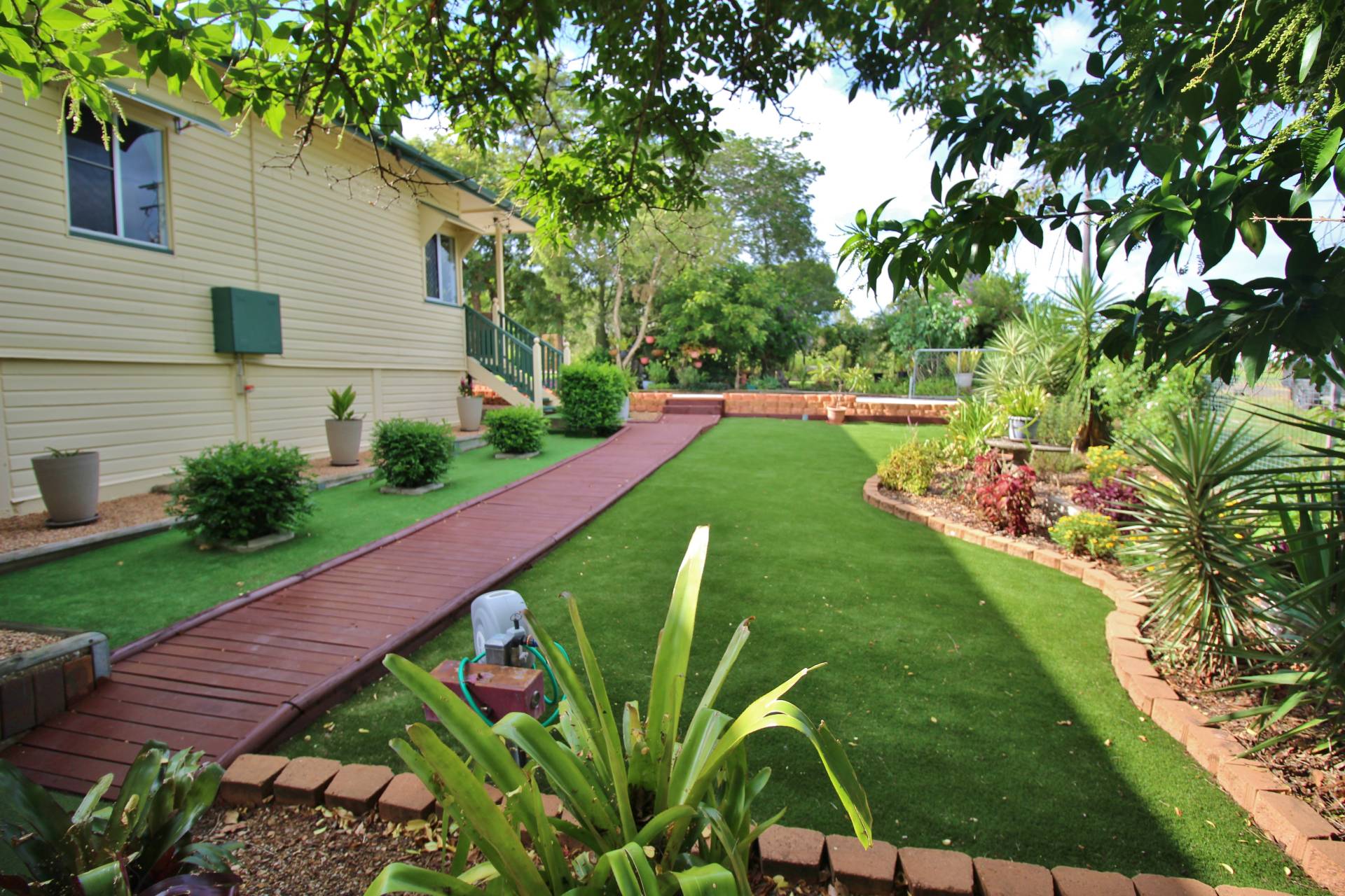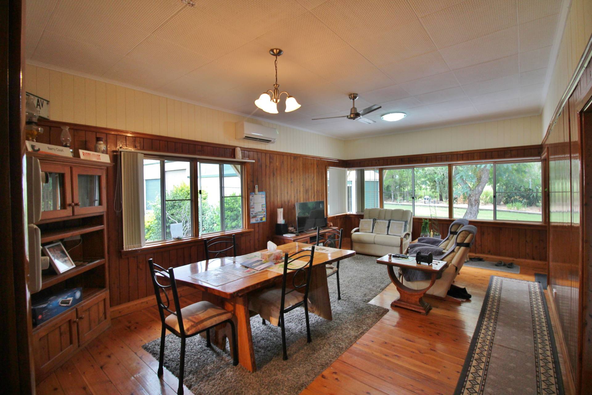Dwelling: Immaculate Queenslander Style Home consisting of 3 Bedrooms with built-ins 1 Bathroom Plus Office-upstairs, Downstairs has teenage Retreat with walk-in Storage Room and Bathroom Laundry Combo / 9' Ceilings / Solid Cypress Timber Polished Floors and VJ Walls / 2 Pac Kitchen with Pantry / Spacious Dinning Lounge Room with Entrance / Concrete Stumps / A/C / Loads of built-in storage / Paved Outdoor Area / Very Neat and Tidy