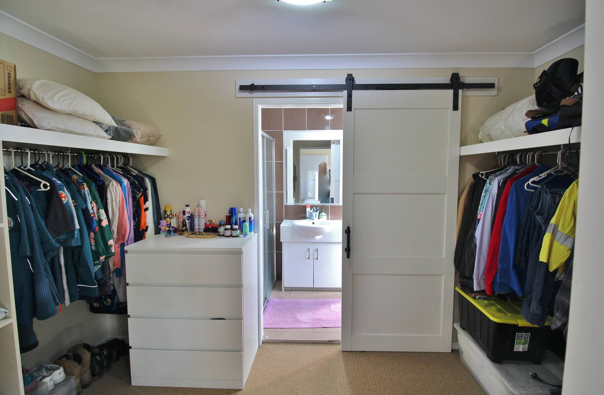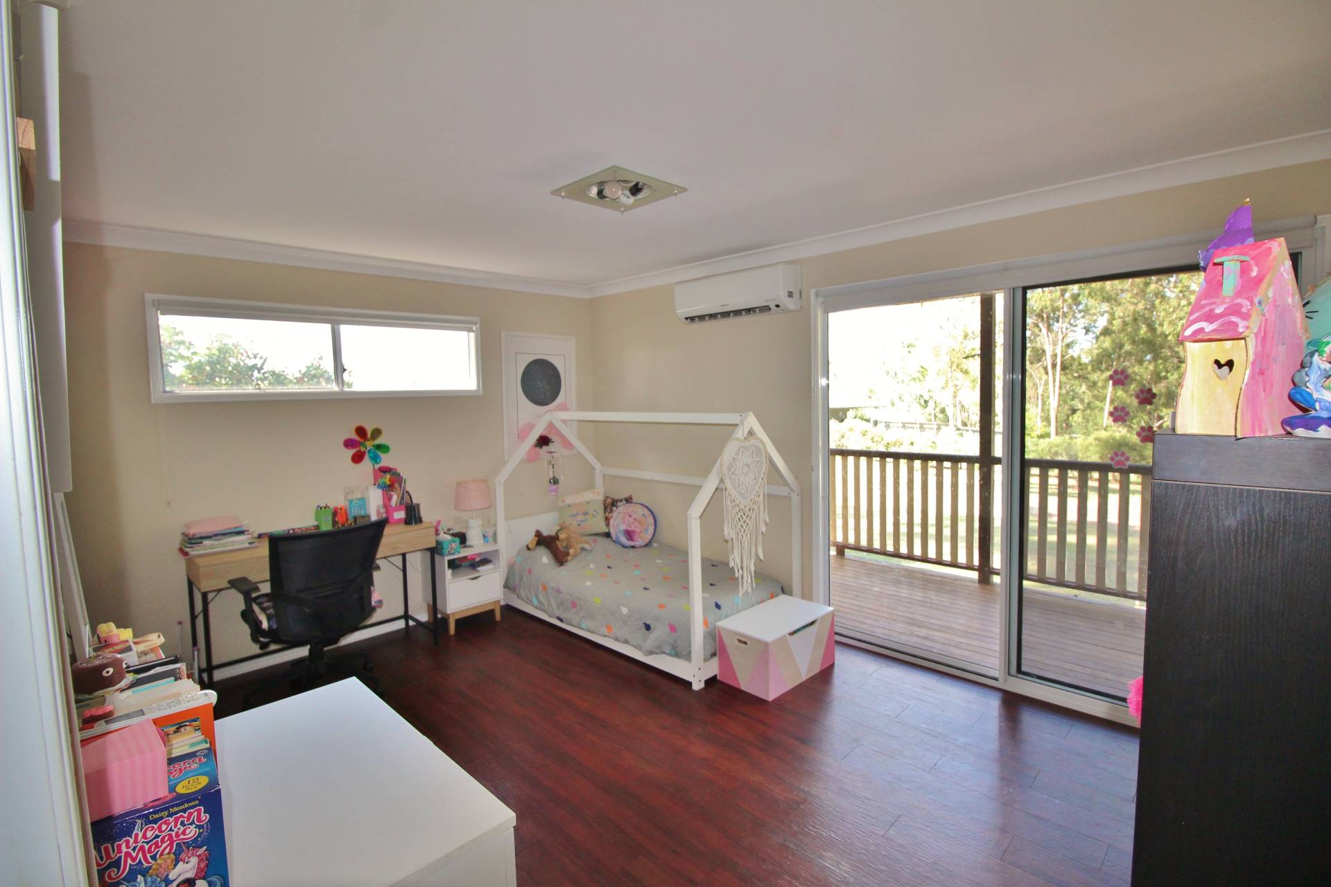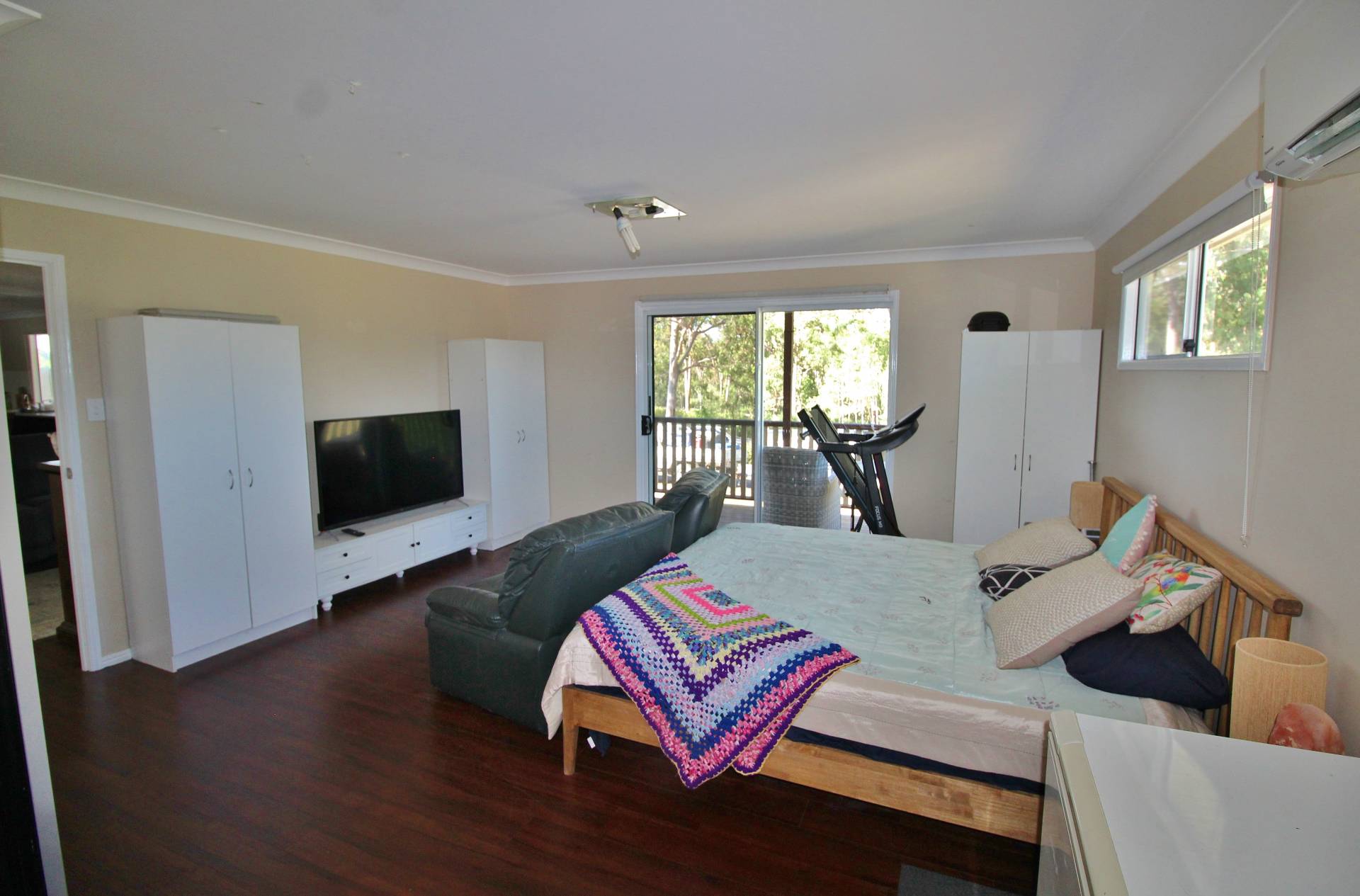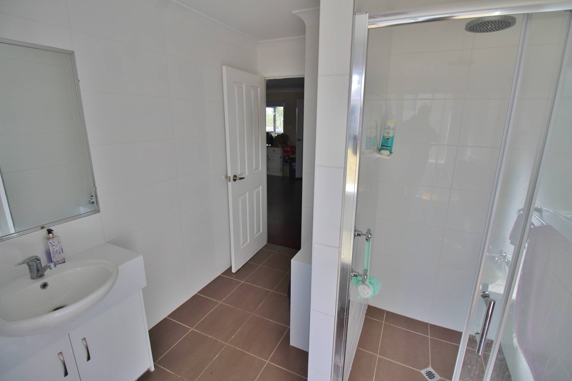 The stylish main bathroom is designed for convenience, with a walk-in shower, bathtub, and separate toilet. Additional features include a large laundry with built-in storage and 4 split-system air conditioners throughout for year-round comfort.