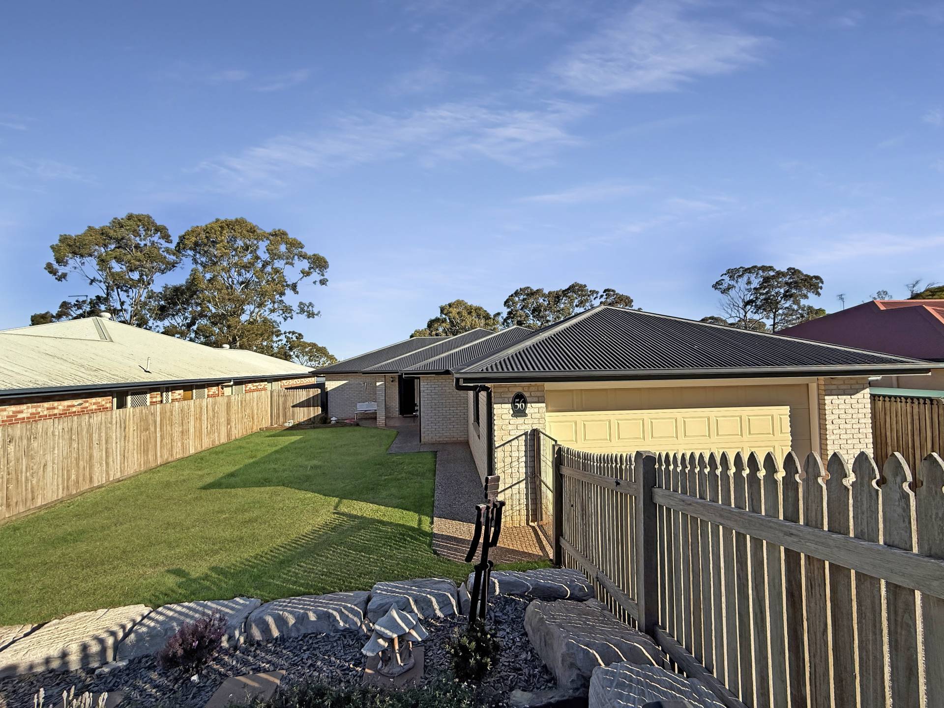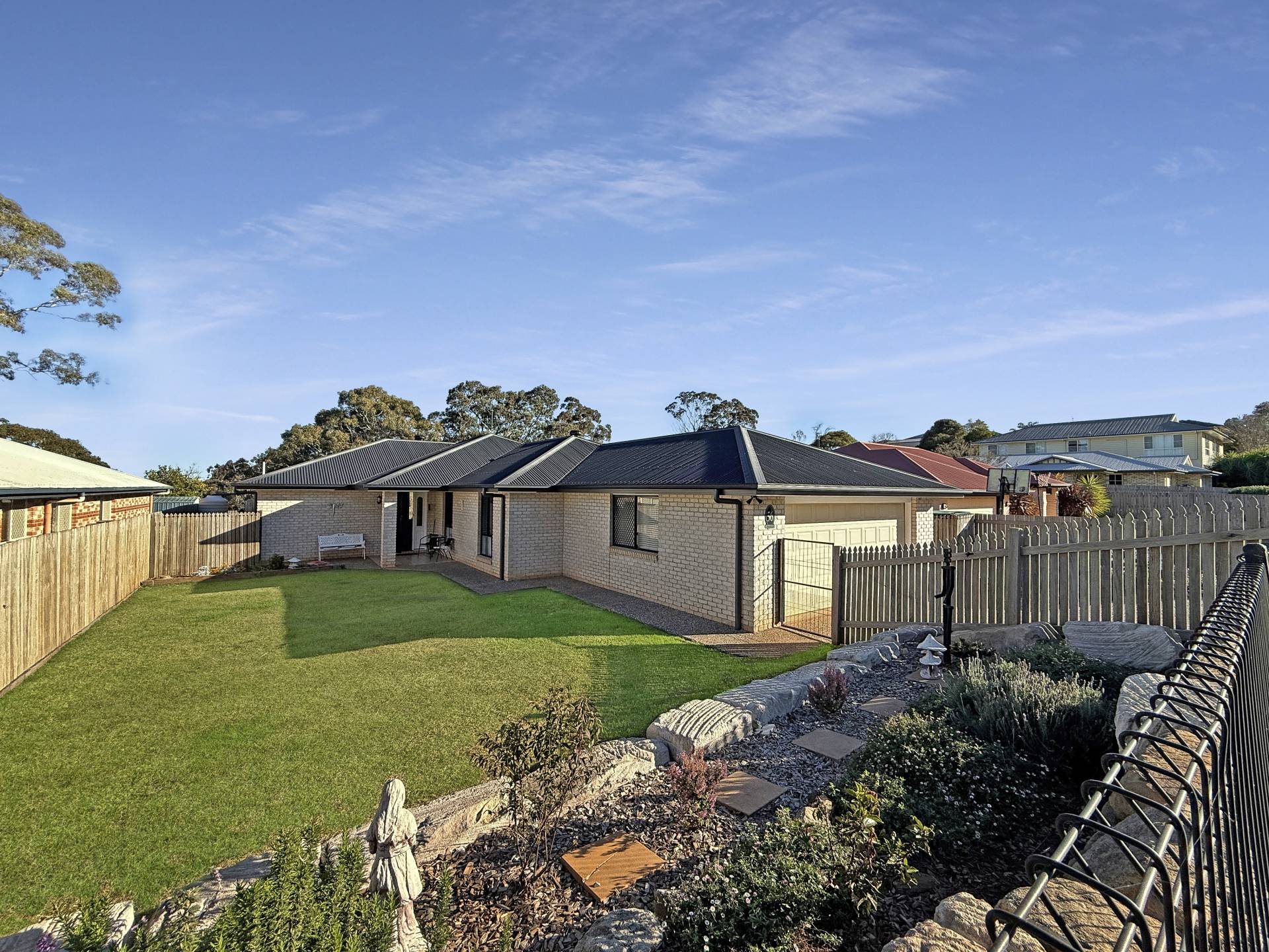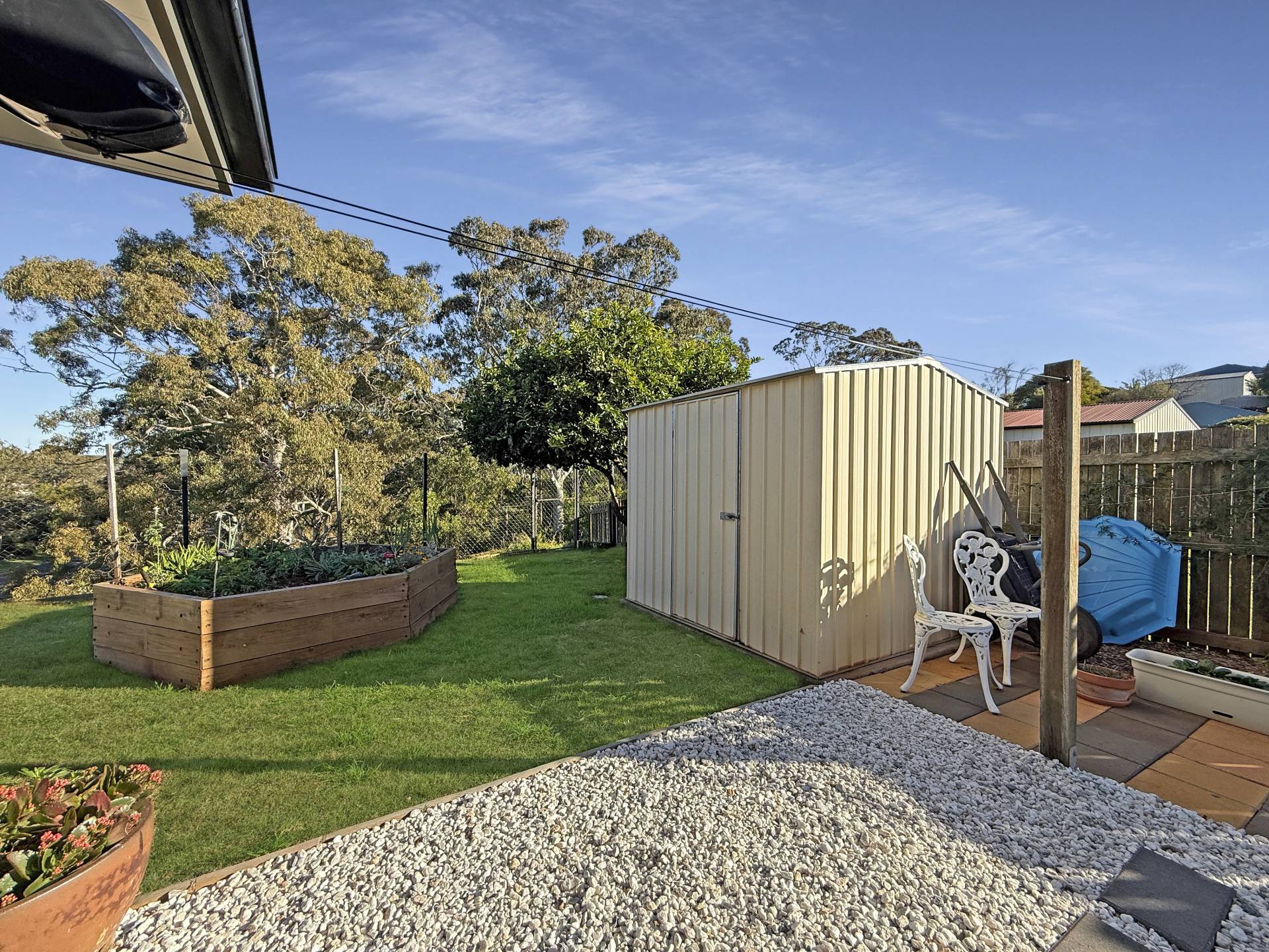 Outside, there’s plenty of room for the kids or pets to play, and the low-maintenance yard offers the potential for further landscaping, a pool, or even a shed (STCA).
