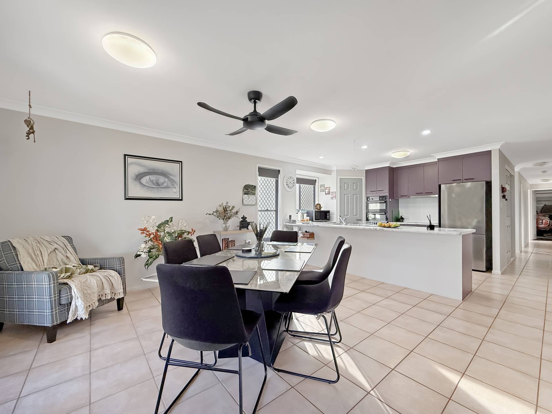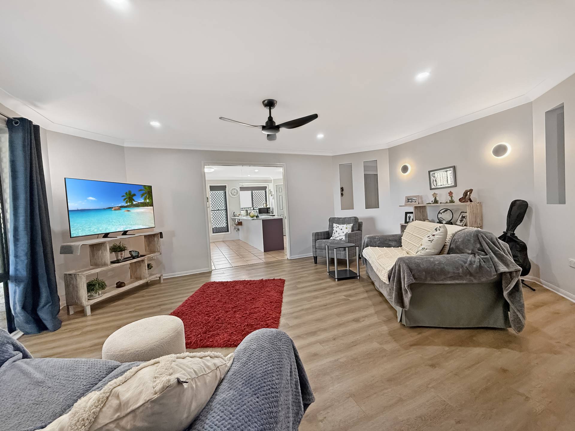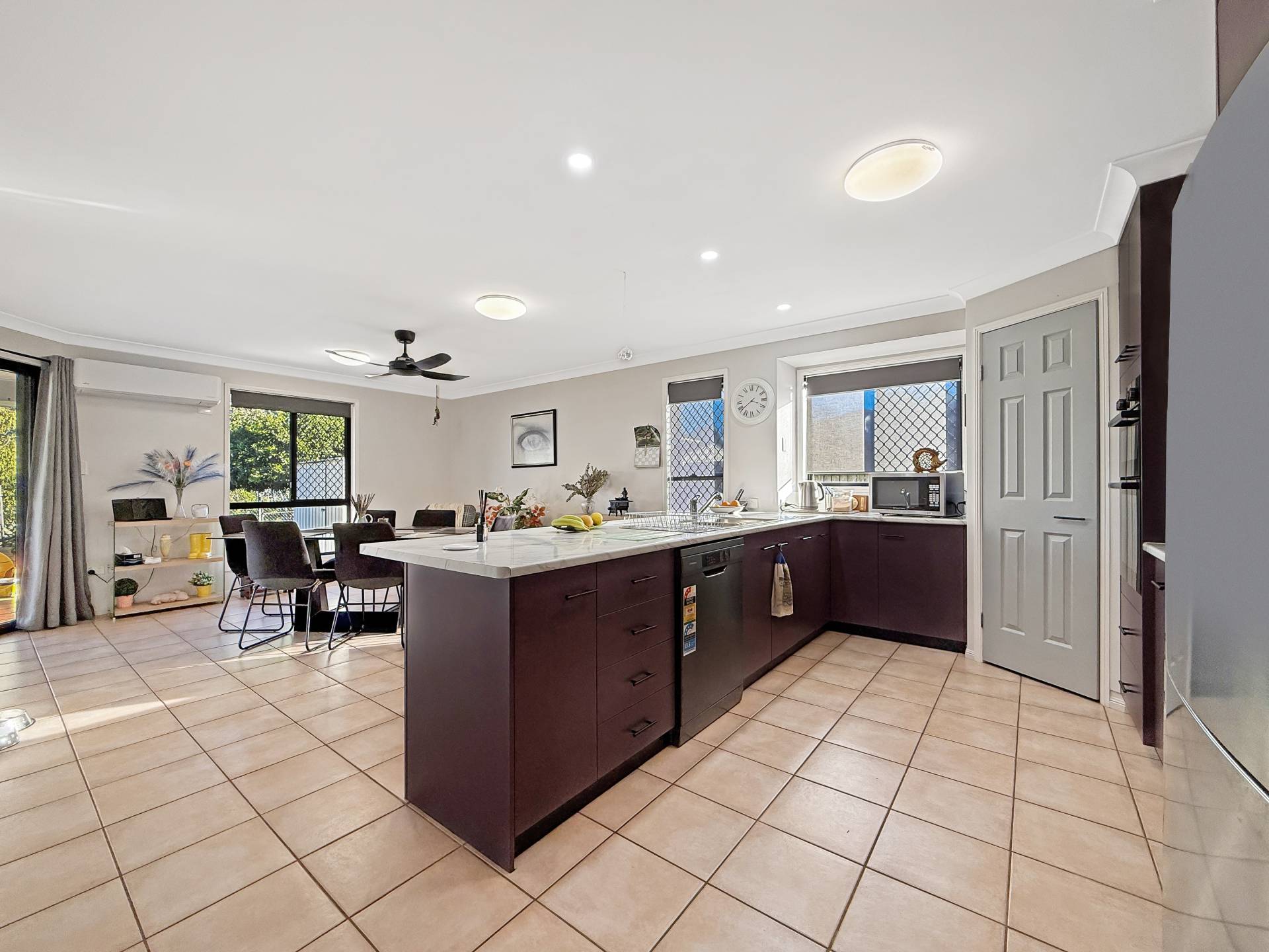The kitchen has been completely modernised and now features sleek new benchtops, an induction cooktop, oven, grill, and rangehood—perfect for preparing meals with ease. The open-plan living and dining area flows effortlessly, creating a warm and functional space for family living and entertaining.