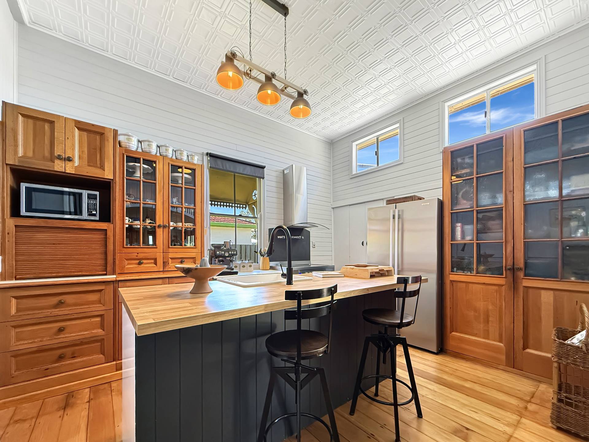 • Authentic Federation Queenslander features including tongue-and-groove walls, ornate fretwork, original pressed metal ceilings and wide timber floors