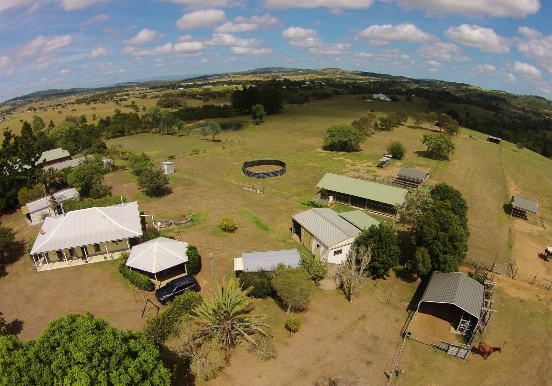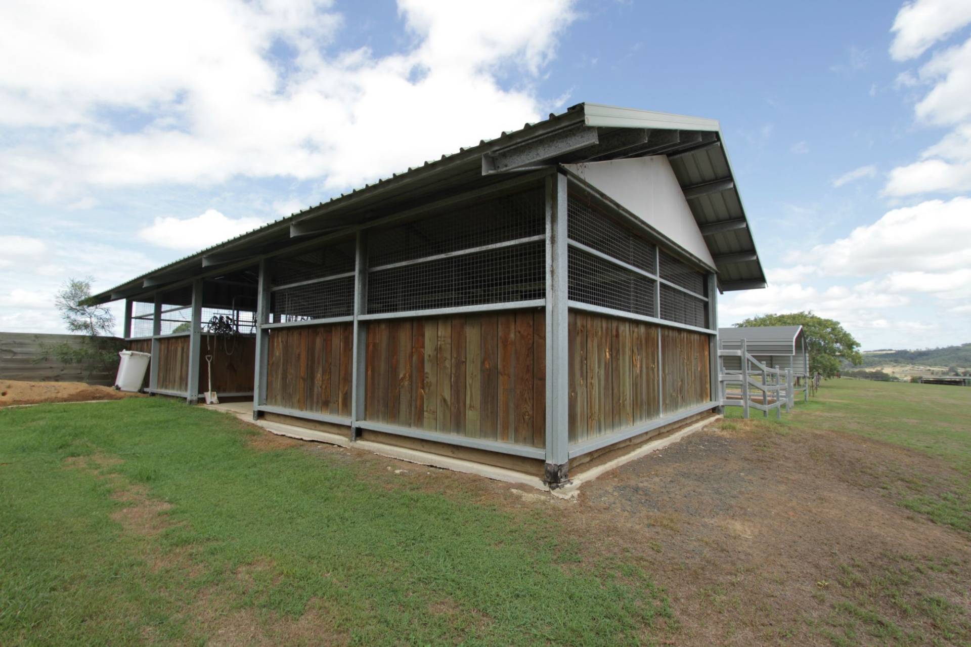 IMPROVMENTS: Neat & Tidy 3 B/R Home with Ensuite and Office that could be 4th Bedroom, 2 x A/C, Large Front & Back Covered Entertaining Areas, Large Rotunda with BBQ * 6m x 12m Concreted & Powered Shed, 4m x 6m Concreted & Powered, 9m x 6m Concreted & Powered with Lean-to, 2 x Double Size Stables and Day Yards with Tack Room & Concreted Floors.