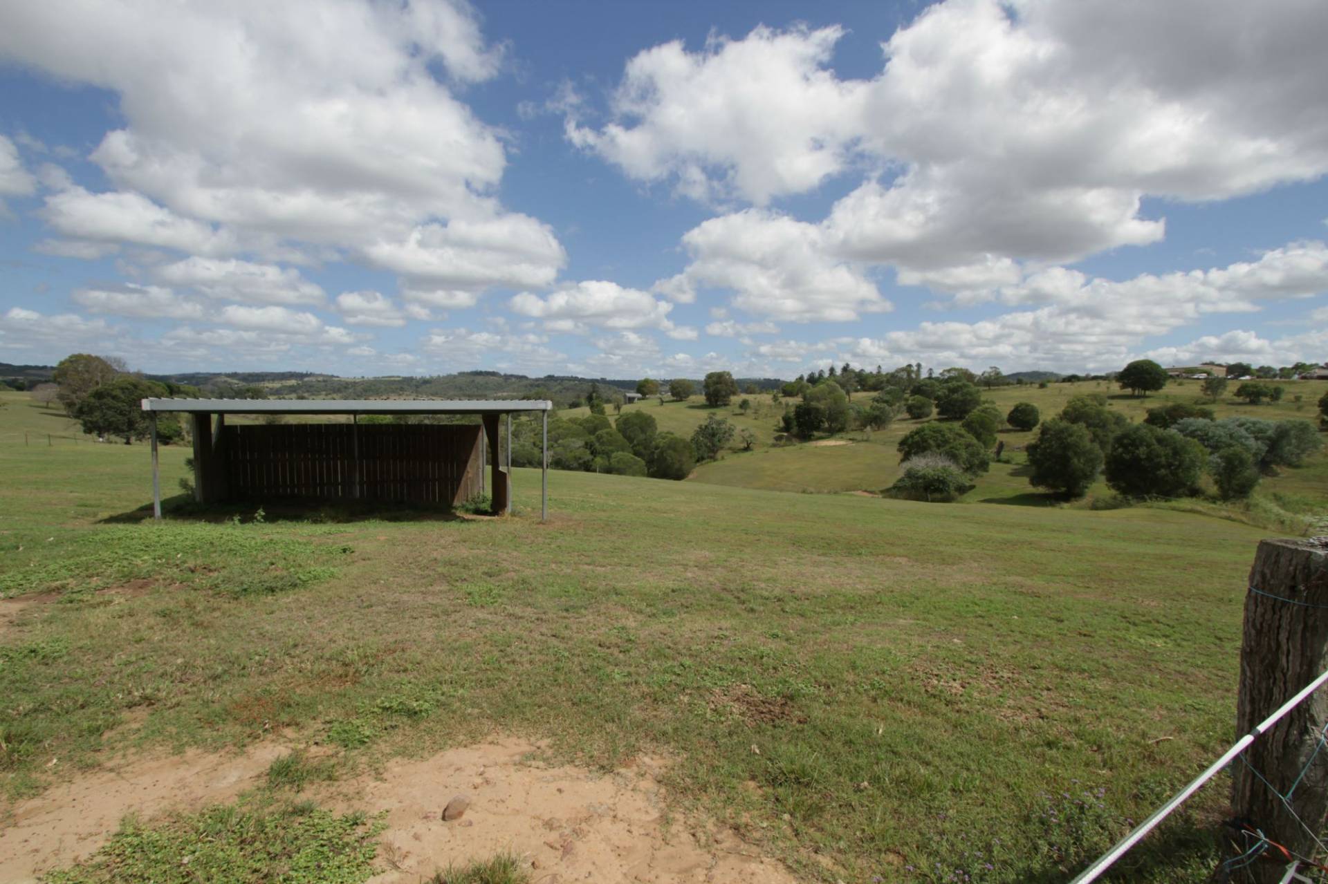 LAND: Elevated Mostly Flat Land, Scenic Views, Beautifully Clean Blue Couch Paddocks, Shade Trees, Selection of Fruit Trees.